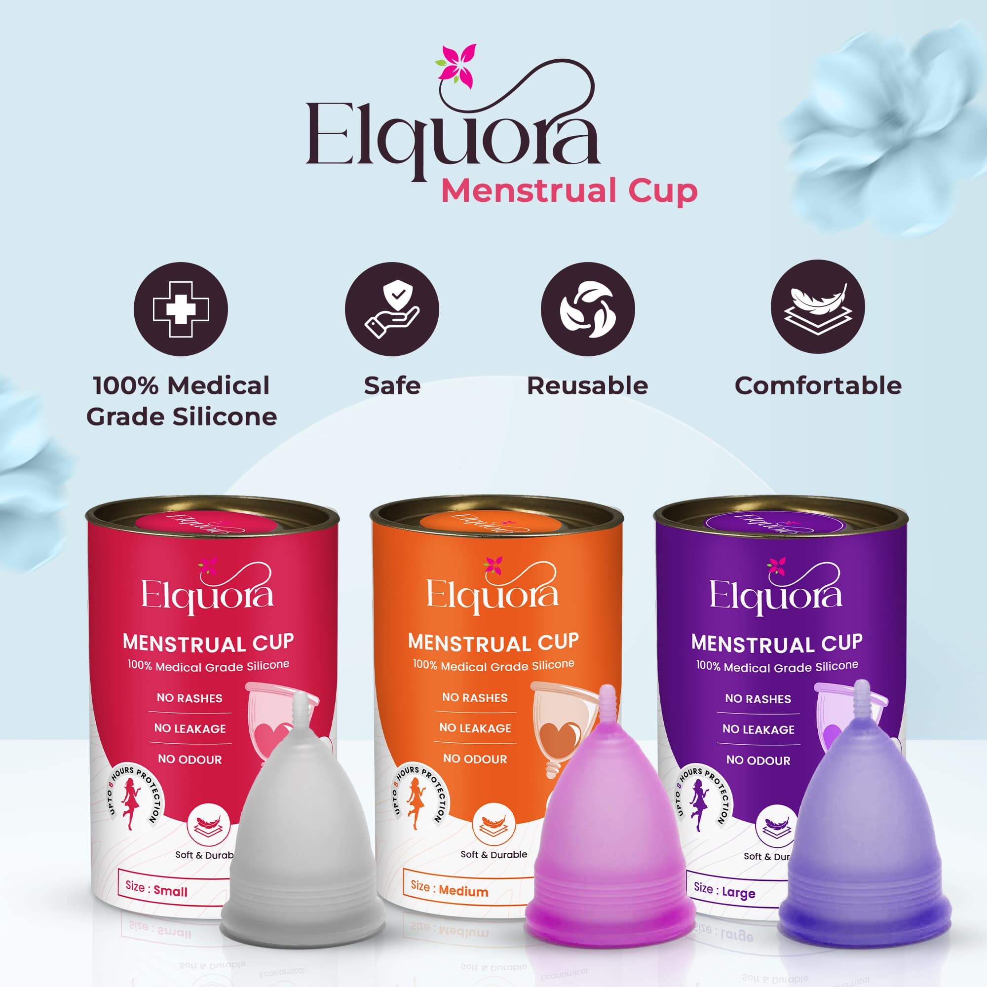 Elquora Menstrual Cup offers a safe, eco-friendly, and leak-free period solution. Made from medical-grade silicone for all-day comfort and protection.
