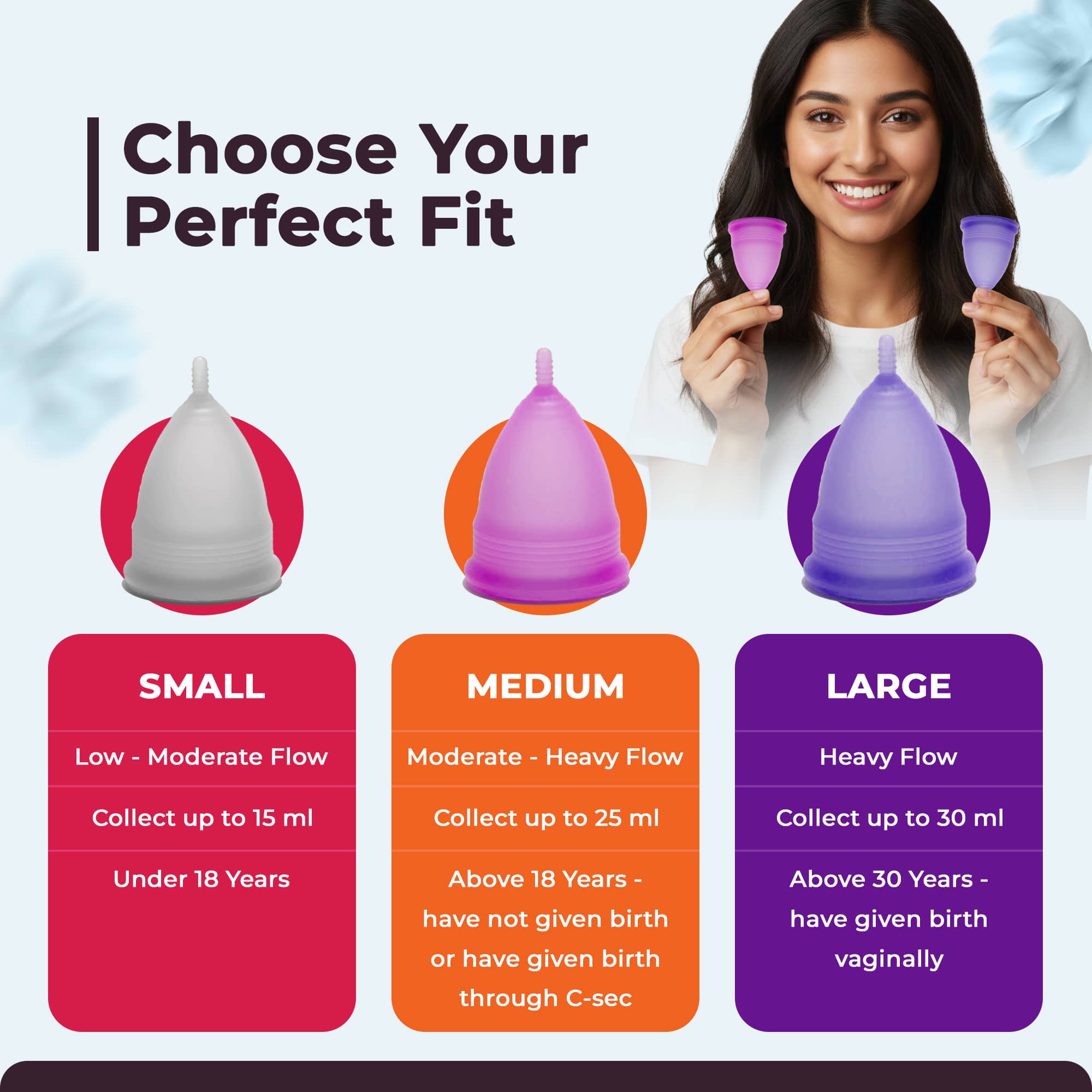 Our bestselling FDA-approved menstrual cups, made of 100% medical-grade silicone, offer 8-10 hours of leakproof protection and complete freedom from rashes.